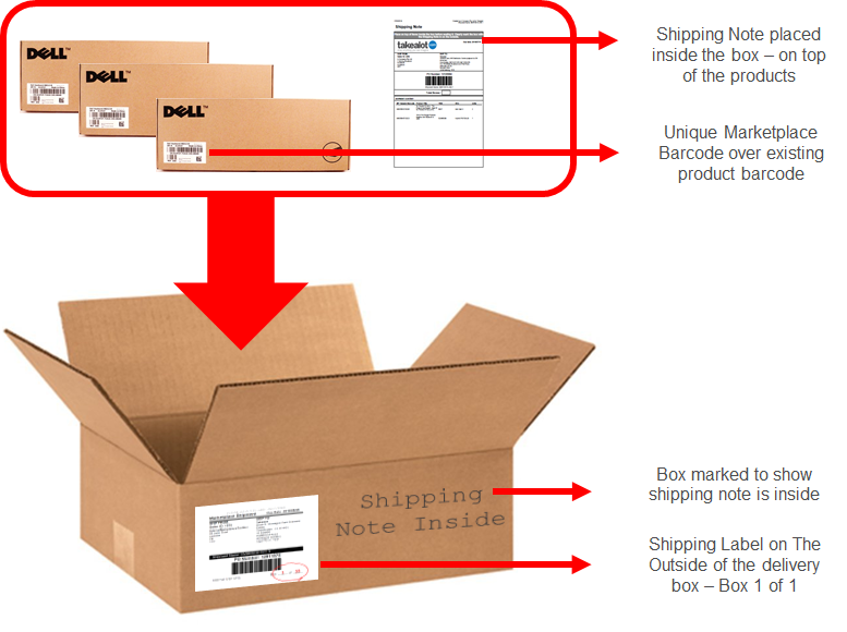 3. Print 2 x Shipping Notes and place 1 inside one of the boxes - mark the box.
