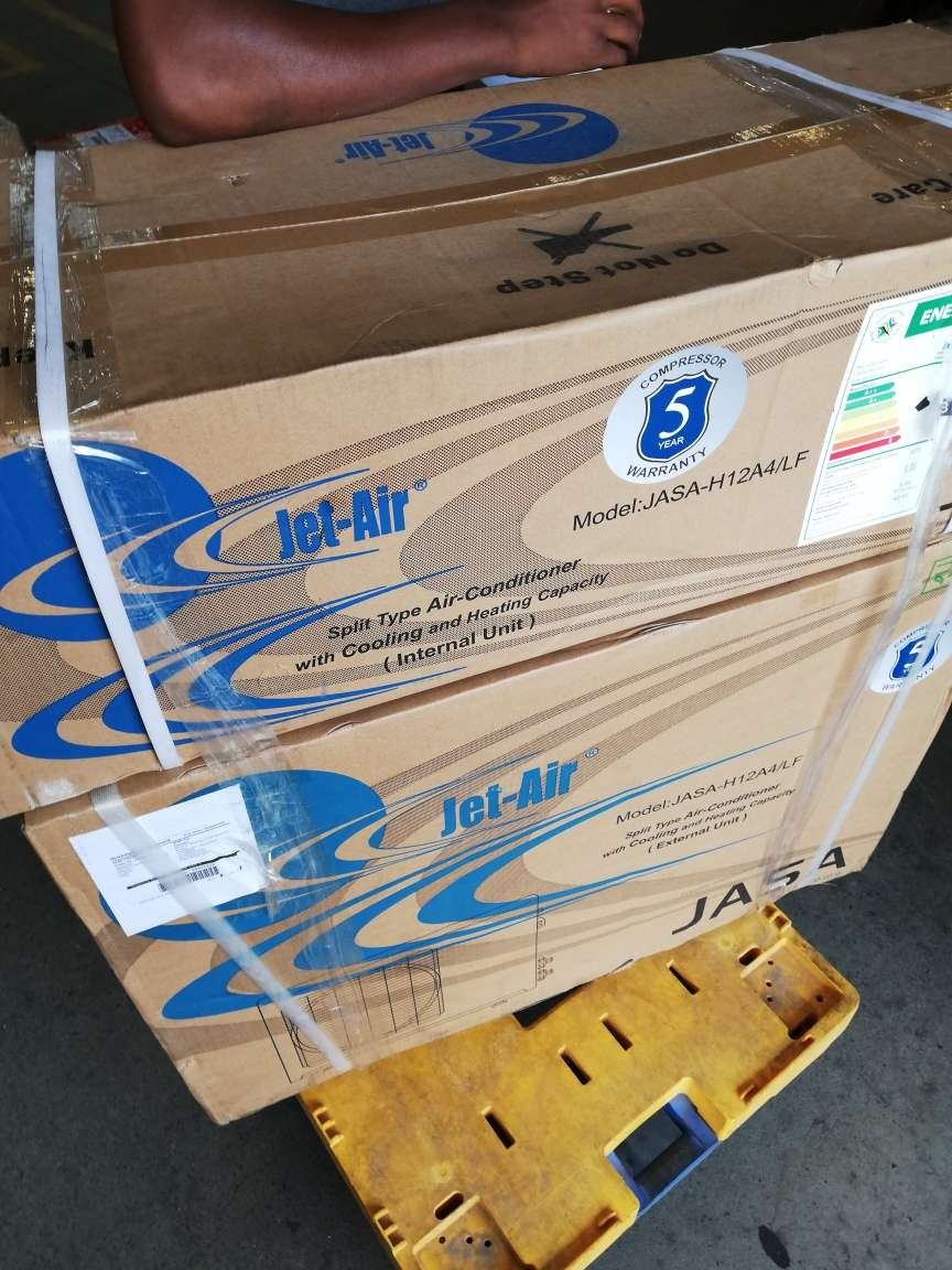 Aircon set boxed, held together and marked as “1 of 2” and “2 of 2” NOT ALLOWED