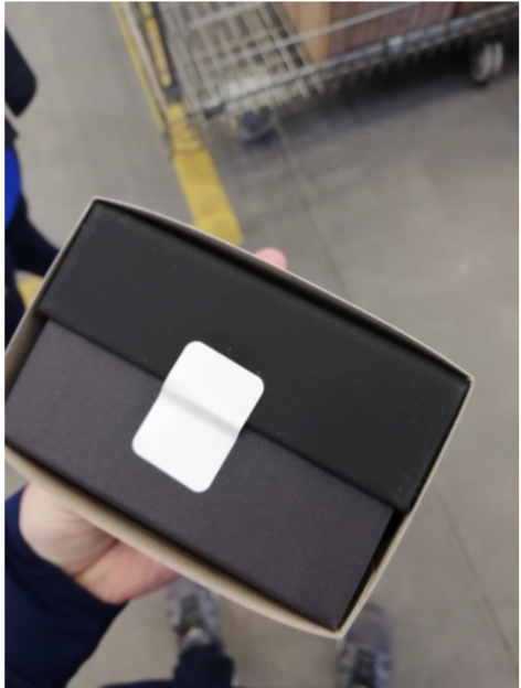 𝥷 The label has NOT been placed on a seam where a box cutter might cut it
