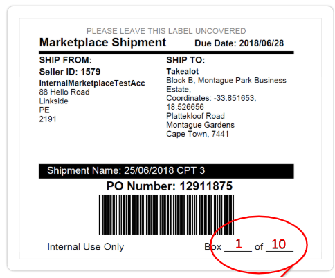 - Shipping boxes with previously issued Takealot shipping or return labels will be rejected. Remove all outdated labels on all shipping boxes prior to delivery.